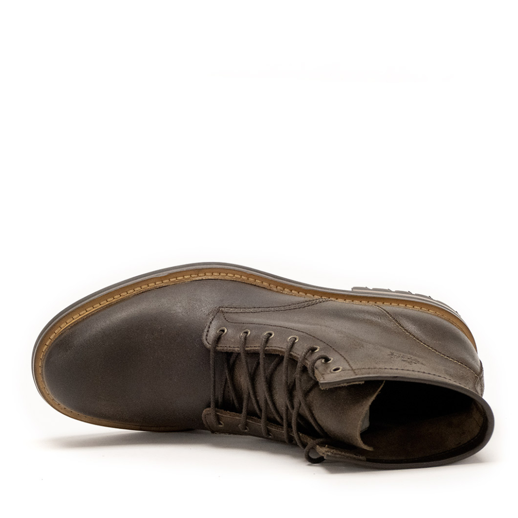Classic laced boot in soft aniline leather with calfskin lining. Outer sole in rubber with leather welting.