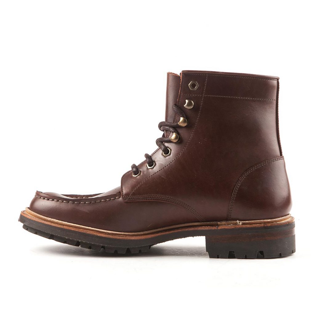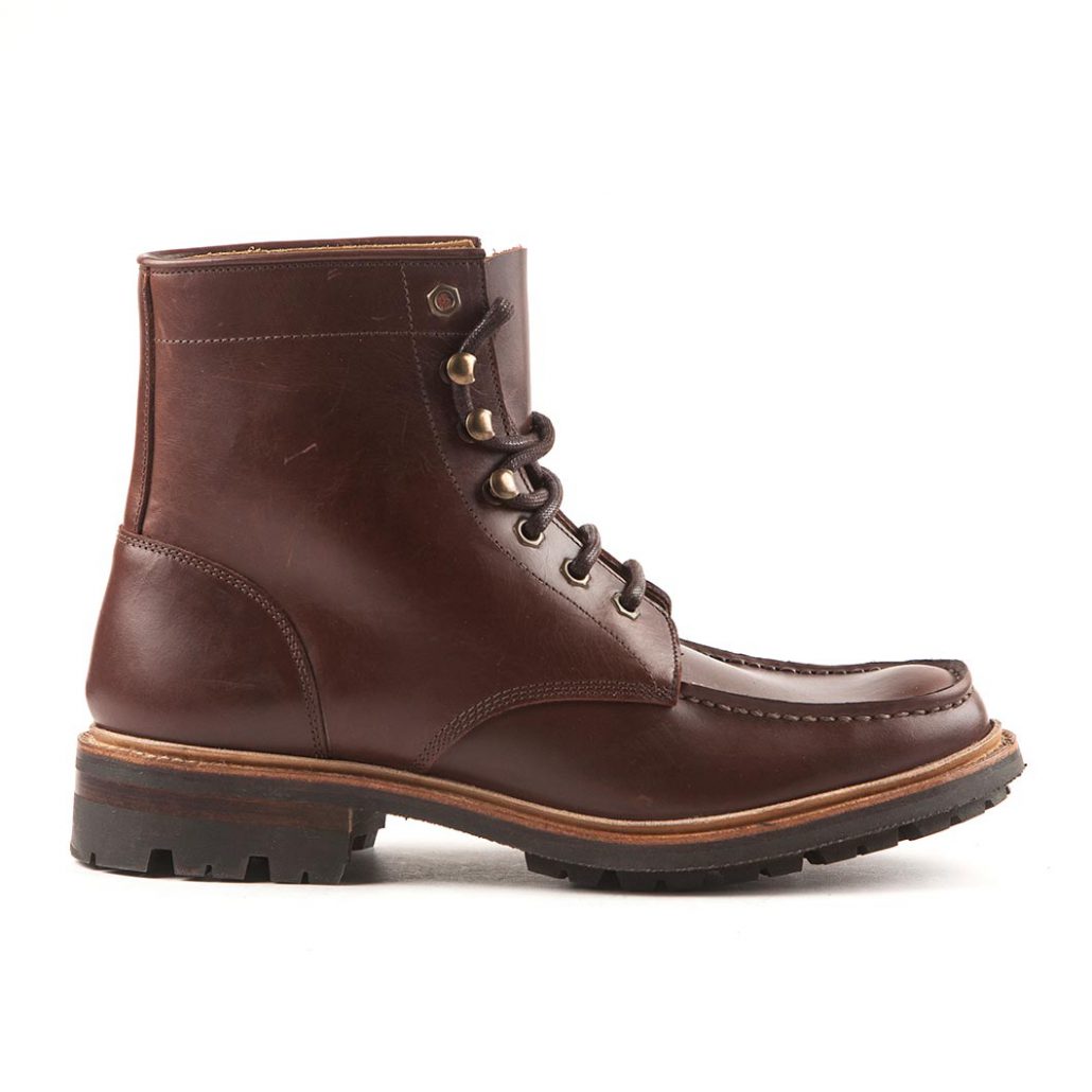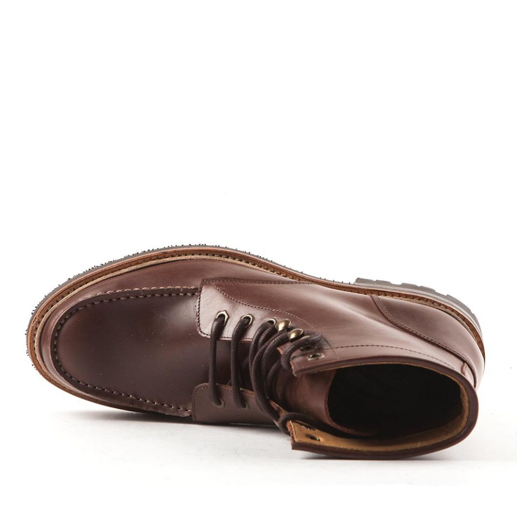 Classic Moc toe boots in brown leather. Upper in strong pull-up leather which means that the material becomes more attractive over time. Unlined with soft padded insock, sturdy tractor sole in rubber with leather welting.