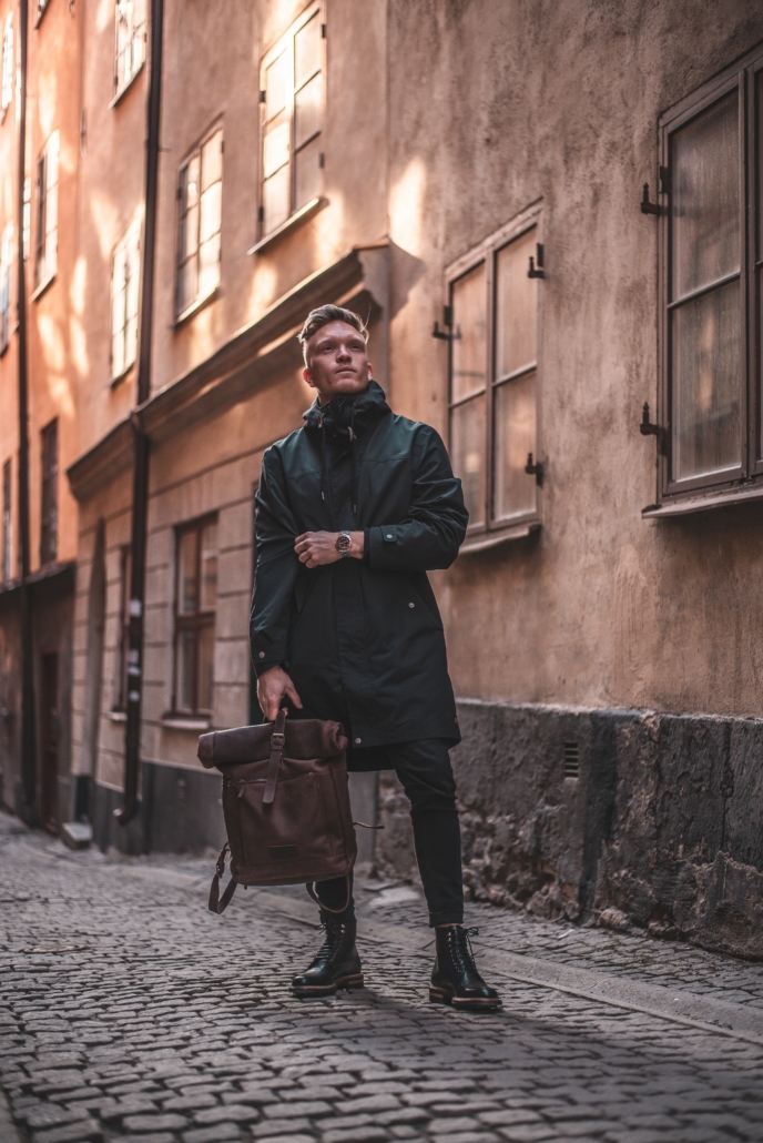 While the first rays of spring light finds it ways through the narrow streets of Old town in Stockholm: We all know that ex-models sometimes becomes photographers. Well heard of many times. But the other way around? Well, not as usual but if it works it works, and this time it surely worked. Most talented Malmö based photographer and content guru Jesper Alm Jarl went from behind the camera to the other side of the lens. ”Haha just testing some camera gear!”